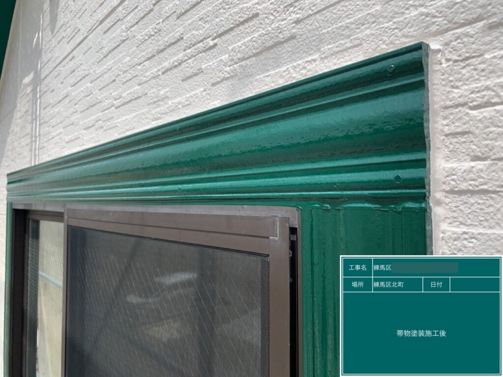 | 仕様材料(塗装) | 軒天・帯物:ケレン清掃 AEP塗装仕上げ 水切り・フード:ケレン清掃 錆止め ウレタン塗装仕上げ 雨樋:ケレン清掃 プライマー ウレタン塗装仕上げ ポスト:雑塗装 |